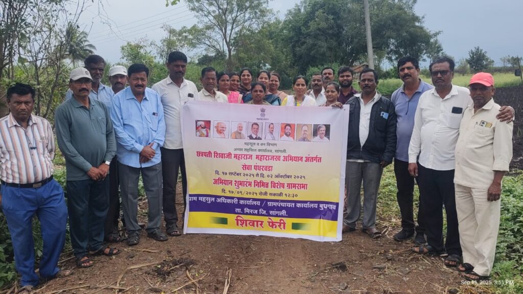 महसूल प्रशासन लोकाभिमुख कार्यक्षम गतिमान व पारदर्शक होण्यासाठी राज्य सरकारकडून अनेक उपक्रम राबविले जातात. याचा अनुषंगाने पंतप्रधान नरेंद्र मोदी यांचा जन्मदिवस १७ सप्टेंबर ते राष्ट्रपिता महात्मा गांधी यांची जयंती २ ऑक्टोंबर दरम्यान छत्रपती शिवाजी महाराज महाराजस्व अभियानांतर्गत सेवा पंधरावडा साजरा करण्यात येणार आहे. त्याच्या पूर्वसंध्येला आज बुधगाव येथे पाणंद शिवार फेरी व अतिक्रमणित रस्त्याची पाहणी करण्यात आली.