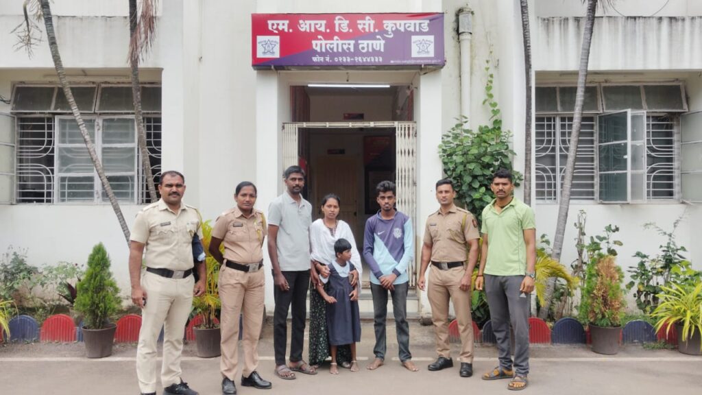 पोलिसांची अधिक माहिती अशी की, मंगळवार (ता.२३) रोजी सकाळी साडेनऊच्या सुमारास कुपवाड एमआयडीसी पोलिसांना एमडीटीवरून केतन कुमार झेंडे (रा. आनंदनगर, कुपवाड) यांनी एक दहा वर्षीय मतिमंद मुलगी हरवली असल्याचा कॉल केला होता. पोलिसांनी घटनेचे गांभीर्य ओळखून कुपवाड पोलीस ठाण्याचे प्रभारी अधिकारी दीपक भांडवलकर यांच्या मार्गदर्शनाखाली बीट मार्शल हवालदार कोळेकर व पो. कॉ. कांबळे यांनी तातडीने घटनास्थळी धाव घेऊन त्या मुलीला ताब्यात घेतले व पोलीस ठाण्यात आणले. ती मुलगी नाव, पत्ता सांगू शकत नसल्याने कुपवाड स. पो. नि. भांडवलकर यांनी तातडीने नातेवाईकांचा शोध घेण्यासाठी पोलीस कर्मचाऱ्यांना आवश्यक त्या सूचना केल्या. त्यानंतर कुपवाड शहरासह परिसरात व संजयनगर पोलीस ठाणे हद्दीत शोध घेतला असता, संजयनगर पोलीस ठाणे हद्दीतील महात्मा फुले हाउसिंग सोसायटी येथे तिचे आई-वडील मिळून आले. खात्री पटवून त्या मुलीला त्यांच्याकडे सुखरूप सुपूर्द करण्यात आले.