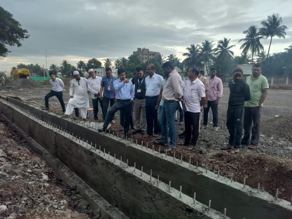 सांगली, ता.२: केंद्र शासन पुरस्कृत पी.एम.ई. बस सेवा योजने अंतर्गत सांगली-मिरज-कुपवाड शहर महानगरपालिकेच्या मिरज येथील नियोजित बस डेपोवर सुरू असलेल्या स्थापत्य व विद्युतिकरण कामांची पाहणी आयुक्त तथा प्रशासक श्री. सत्यम गांधी यांनी बुधवारी०१ ऑक्टोबर रोजी केली. या पाहणीदरम्यान आयुक्तांनी सद्यस्थितीचा आढावा घेतला तसेच काम गतीने व दर्जेदार पद्धतीने पूर्ण करण्याच्या सूचनाही संबंधित विभागांना दिल्या.