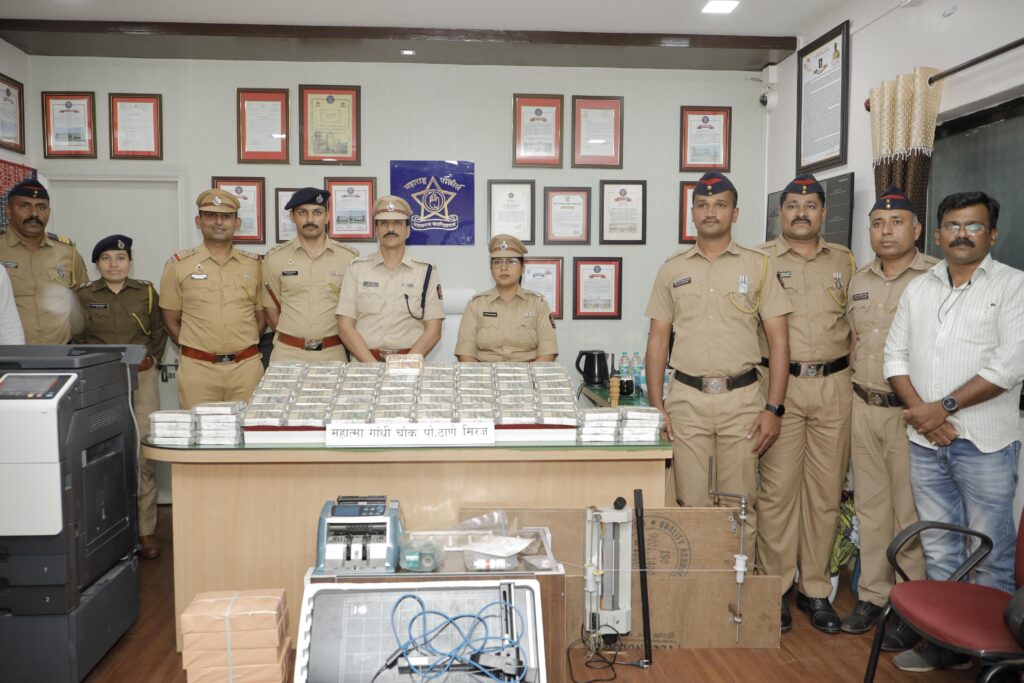 पोलीसांची अधिक माहिती अशी की, बुधवार (ता.८) रोजी महात्मा गांधी पोलीस ठाण्याचे प्रभारी अधिकारी संदीप शिंदे यांना गोपनीय खात्रीशीर माहिती मिळाली की, सुप्रीत देसाई हा बनावट नोटा घेऊन निलजी-बामणी रोड, कोल्हापूर ब्रिज, मिरज येथे आला आहे. सपोनि / संदीप शिंदे यांनी तात्काल पोलीस उपनिरीक्षक रुपाली गायकवाड व त्यांचा पथकाला छापा टाकून कायदेशीर कारवाई करण्याचे आदेश दिले. पोलीस उपनिरीक्षक रुपाली गायकयाह यांचे नेतृत्वाखाली पथकाने नमूद ठिकाणी सापळा रचून संशयीतरीत्या वावरत असलेल्या सुप्रीत देसाई त्याची अंगझडती केली असता त्याच्या पँटच्या खिशातून पाचशे रुपये चलनाचा बेचाळीस हजार रुपये किंमतीच्या ८४ बनावट मिळून आल्या. संसायितास ताब्यात घेऊन गुन्हा दाखल केला. पोलिसांच्या अधिक चौकशीत सदरच्या बनावट नोटा ह्या संशयीत आरोपी राहूल राजाराम जाधव हा तयार करीत असून त्याच्या जवळून ह्या नोटा सुप्रीत देसाई, इब्राम इमानदार, नरेंद्र शिंदे हे महाराष्ट्र राज्यात विविध भागात वितरित करीत निष्पन्न झाले. नमूद पथकाने छपाई करणारा संशयीत आरोपी राहुल राजाराम जाधव याचा शोध घेऊन कोल्हापूर मुख्य मार्केट परिसरातील रुईकर कॉलनी येथील बनावट नोटा तयार करणाऱ्या कंपनीच्या ऑफिसमधून ताब्यात कंपनीतून पाचशे रुपये चलनाचा ३४ हजार रुपयांच्या ६८ बनावट नोटा, बनावट नोटा छपाईचे साहित्य लॅपटॉप, प्रिंटर असे १ लाख ७ हजार ६०० रुपयांचे मिळून आले. सदर संशयीत राहुल व सुप्रीत याला गुन्ह्याच्या तपासकामी ताब्यात घेऊन न्यायालयात हजर केले असते. न्यायालयाने शनिवार (ता.११) रोजी पर्यंत पोलीस कोठडी सुनावली. कोठडीत संशयीत चौकशीत अन्य दोघे संसीयतांची माहिती घेवून इब्रार इमानदार व नरेंद्र शिंदे यांना पुणे-बेंगलोर हायवे वरील पेठनाका ते कासेगाव येथे ताब्यात घेतले. त्यांच्याकडून विना नंबरप्लेट एक इनोव्हा चार चाकीत ५०० रुपये चलनाच्या ९७ लाख ६७ हजार ५०० रुपयांचे १९ हजार ५३५ रुपयांचा बनावट नोटा, २०० रुपये चलनाच्या ८५ हजार ८०० रुपयांच्या ४२९ बनावट नोटा मिळून आल्या. त्यांच्यासोबत असणारा सिद्धेश म्हात्रेला ताब्यात घेऊन बनावट नोटा विना नंबरप्लेट इनोव्हा चारचाकी व लॅपटॉप आणि साहित्य असा हा एकूण १ कोटी ९ लाख ३०० रुपयांचा मुद्देमाल जप्त करण्यात आला. या गुन्ह्यातील राहुल राजाराम जाधव परराज्यात ही गुन्हा असून तो सराईत गुन्हेगार असल्याचे निष्पन्न झाले. या पुढील अधिक तपास महात्मा गांधी पोलीस ठाण्याचे प्रभारी अधिकारी संदीप शिंदे हे करीत आहे.