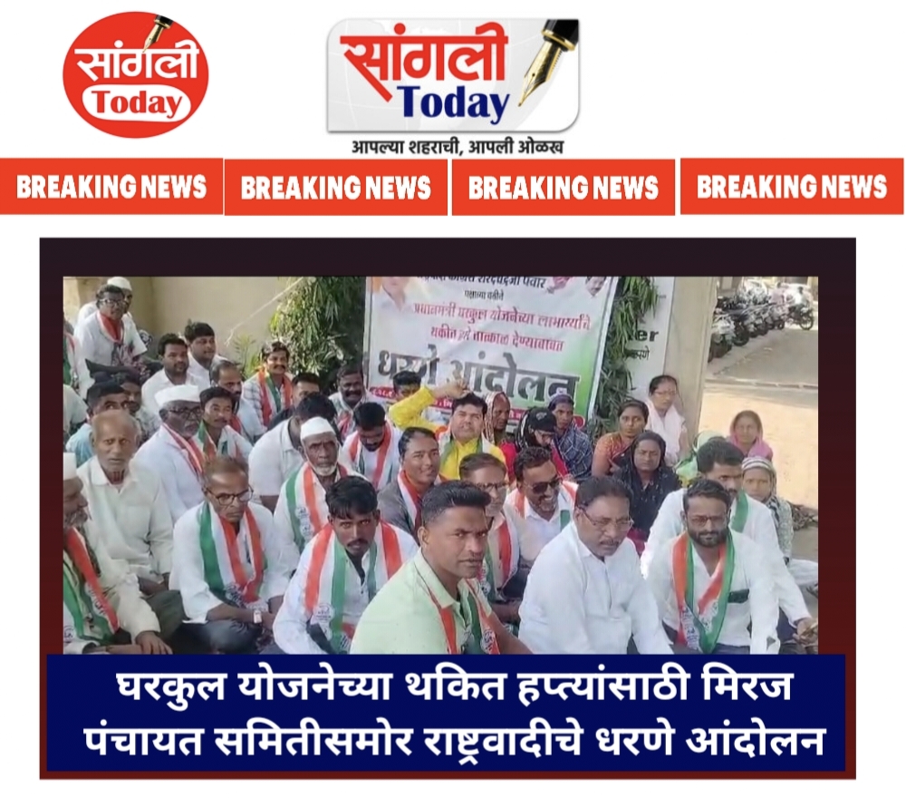 लाभार्थ्यांना त्यांचे थकित हप्ते तात्काळ देण्यात यावेत, या प्रमुख मागणीसाठी मिरज तालुक्यातील लाभार्थ्यांनी पंचायत समिती कार्यालयासमोर आंदोलन सुरू केले. यावेळी आंदोलकांनी प्रशासनाविरोधात जोरदार घोषणाबाजी केली.