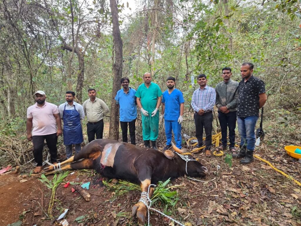 कोल्हापूरमधील कडगाव परिसरात एका मादी रानगव्याला वाहन अपघातात गंभीर इजा झाली होती. स्थानिक स्तरावर डॉ. संतोष वाळवेकर यांनी ही परिस्थिती पाहून तातडीने सांगलीतील तज्ज्ञ डॉक्टरांशी संपर्क साधला. माहिती मिळताच सांगली जिल्ह्यातून पशुसंवर्धन विभागाची एक विशेष टीम घटनास्थळी रवाना झाली.