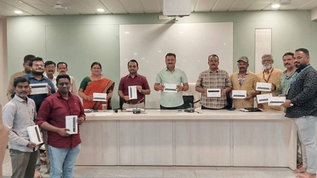 सांगली: सांगली-मिरज-कुपवाड महानगरपालिकेचा कणा असलेल्या मालमत्ता कर विभागाला अधिक कार्यक्षम, पारदर्शक आणि तंत्रज्ञानस्नेही बनवण्यासाठी महापालिका प्रशासनाने मोठे पाऊल उचलले आहे. महापालिका आयुक्त श्री. सत्यम गांधी यांच्या विशेष पुढाकारातून कर संकलनाचे कार्य करणाऱ्या भाग लिपिकांना अद्ययावत ‘टॅब’ (Tablets) उपलब्ध करून देण्यात आले असून, अतिरिक्त आयुक्त श्री. राहुल रोकडे यांच्या हस्ते याचे नुकतेच वाटप करण्यात आले.