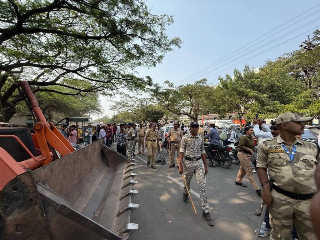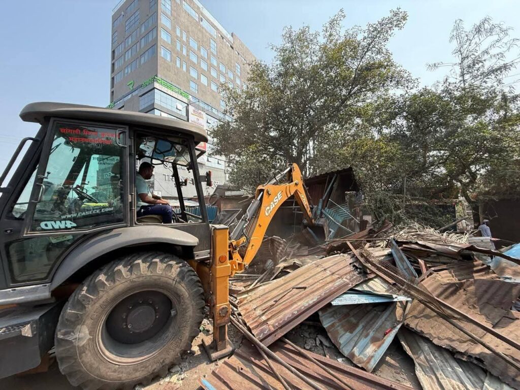 सांगली | प्रतिनिधी, ता.१६ : सांगली-मिरज-कुपवाड शहर महानगरपालिका क्षेत्रात अनधिकृत बांधकामे आणि अतिक्रमणांविरुद्ध प्रशासनाने आता अत्यंत आक्रमक पवित्रा घेतला आहे. महापालिका आयुक्त सत्यम गांधी यांच्या थेट निर्देशानुसार, आज सांगली-मिरज रोडवरील विश्रामबाग चौक (जुना जकात नाका) व दांडेकर बझार समोरील अनेक वर्षांपासून असलेल्या ६७ अनधिकृत खोक्यांवर महापालिकेने धडक कारवाई करत रस्ता मोकळा केला.
