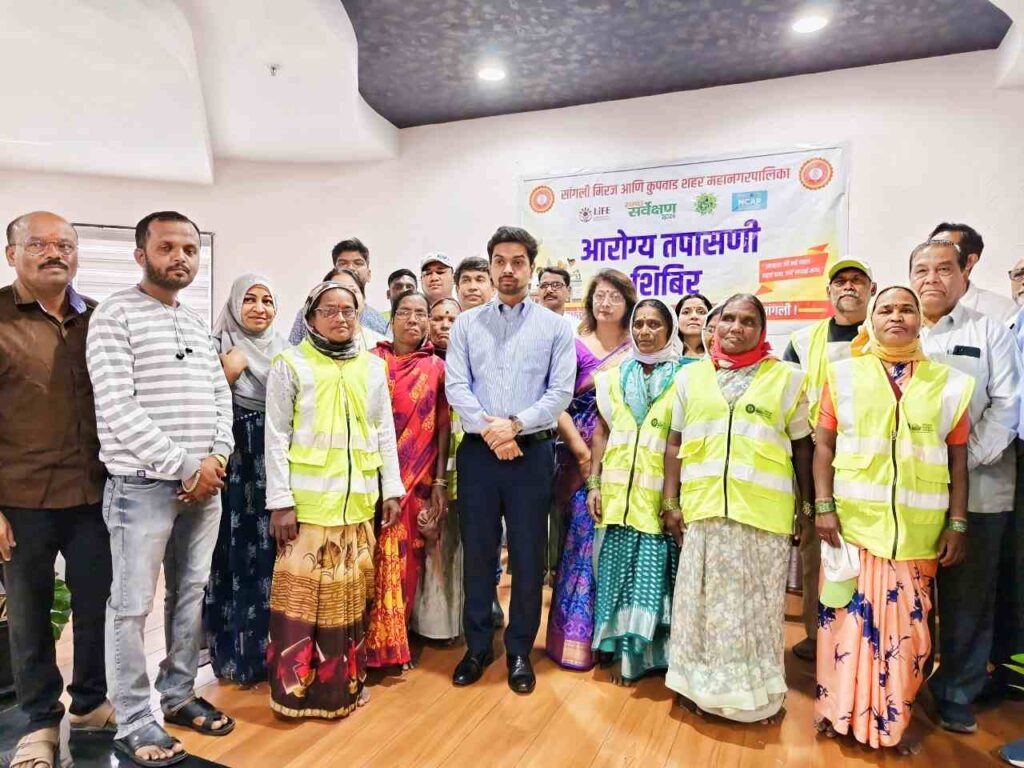 सांगली | प्रतिनिधी, ता.२३ : सांगली-मिरज-कुपवाड शहराच्या स्वच्छतेसाठी अहोरात्र कष्ट करणाऱ्या आरोग्य व घनकचरा व्यवस्थापन विभागातील कर्मचाऱ्यांसाठी ‘युनिक इन्स्टिट्यूट ऑफ क्रिटिकल केअर’ (UICC) तर्फे विशेष मोफत आरोग्य तपासणी शिबिराचे आयोजन करण्यात आले. महानगरपालिकेचे आयुक्त श्री. सत्यम गांधी आणि उपायुक्त सौ. स्मृती पाटील यांच्या मार्गदर्शनाखाली हा स्तुत्य उपक्रम यशस्वीरित्या पार पडला.